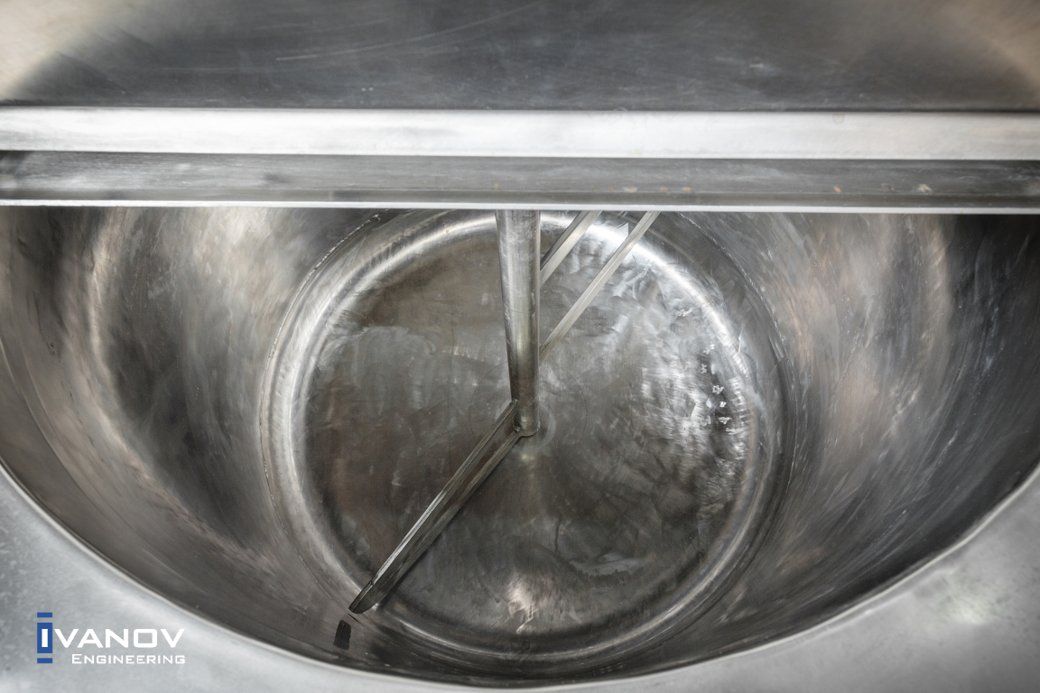 - Das Rührwerk mit dem Mischwerkzeug ist abnehmbar. Standardmäßig wird einen Ankerrührer installiert.